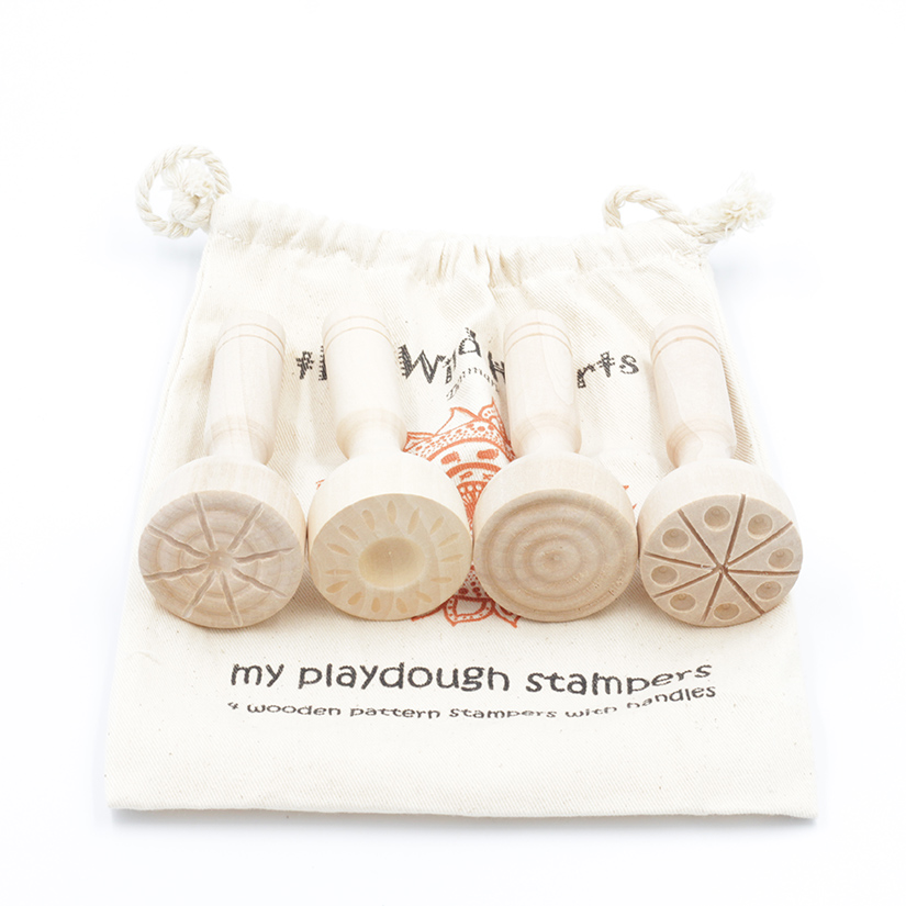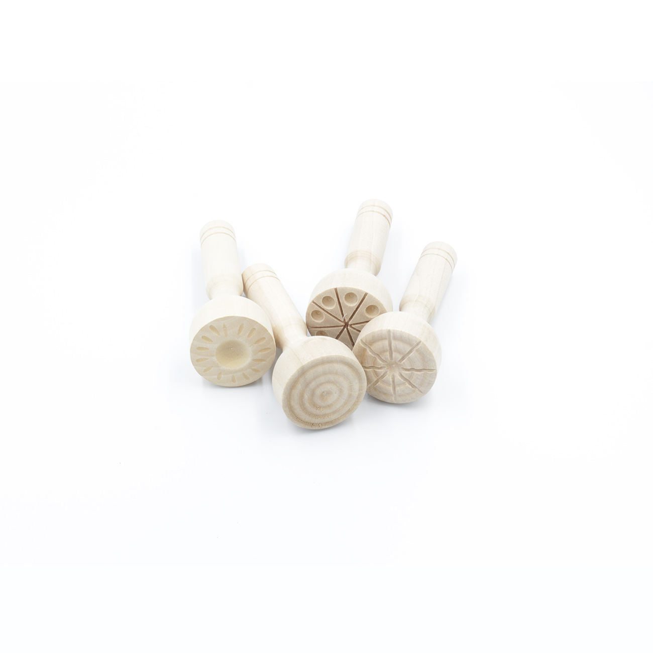 Sæt bestående af 4 flotte træstempler. Stemplerne har flotte mønstre og er nemme at holde på, selv for de mindre børn.